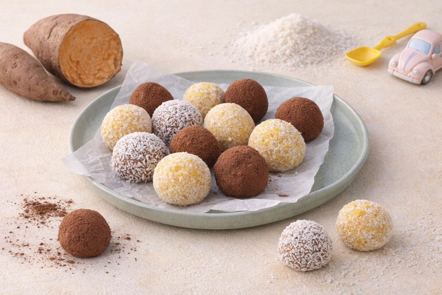 - Reboza cada bolita según la variedad elegida: coco rallado, cacao puro o azúcar.